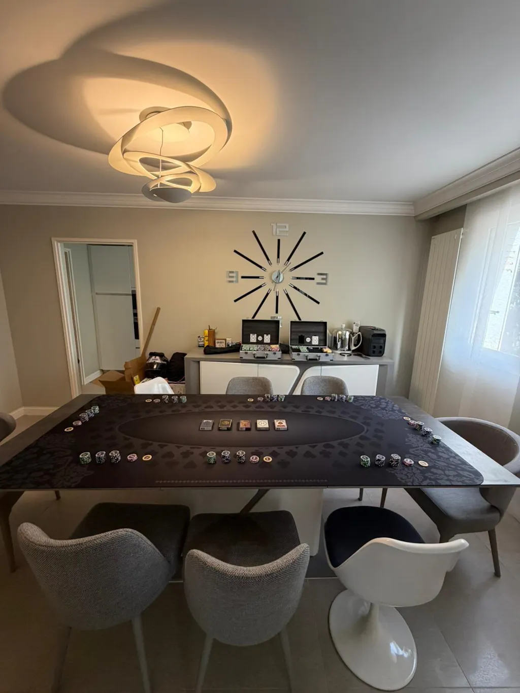With its exclusive patterns inspired by professional tables , this XXL rug instantly transforms your dining room table into a high-end poker table.